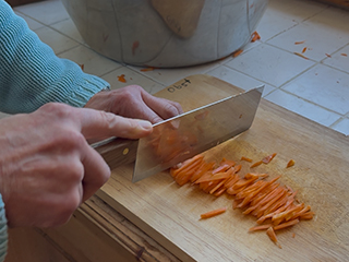 Eine Karotte klein schneiden und als Salat zuzubereiten bringt im Gegensatz mehr eine Yin Energie in die Speise. Auch ein Garen von kleinen Stücken im Wasser fördert das Yin Element, während das wasserlose Zubereiten desselben Gemüses in der Bratpfanne, mit geröstetem Sesamöl, wieder mehr yangisirende, zusammenziehende Energie in das Nahrungsmittel hineinbringt.